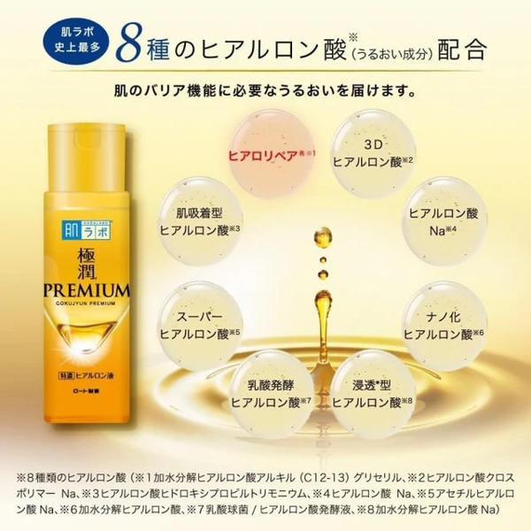 Nước cân bằng da Hada Labo Gokujyun Premium Hyaluronic Acid / Thương hiệu: Hada Labo / (Nước cân bằng da chống lão hóa, dưỡng ẩm, không chất tạo màu, không hương liệu, độ pH hơi axit) / [Nhà phân phối, nhà sản xuất, nhà nhập khẩu hoặc người bán] Rohto Pharmaceutical / [Chi tiết sản phẩm Hada Labo Gokujyun Premium Hyaluronic Acid]